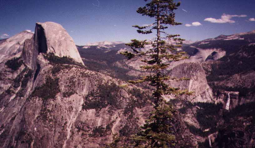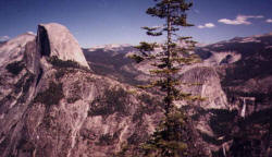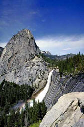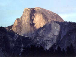 Come up for the weekend. Hike the Half Dome Trail, walk the scenic valley floor, or just dine in the elegance of the majestic Ahwahnee Hotel. Invite your family and friends to join us and build some happy High Sierra memories. Yosemite in the spring with the waterfalls pouring has to be seen to be believed. Come enjoy hiking, camping and camaraderie. Roast some marshmallows by the campfire. Watch the sunset in the nation's most scenic national park. We look forward to hearing from you and hope you can make it. Here is what we plan to do: Arrive in Yosemite Valley by Friday, May 21 Spend the night in the lodging that best suits your personal preference. The Ahwahnee Hotel is 5 star while the Upper Pines campground is millions of stars and ready for your tent. And there is a whole range in between. Many of the folks with whom I have already spoken are headed for the tent cabins in Curry Village (probably my choice too). If you need some help deciding let me know and I can give the low down as I have had the pleasure of staying in every conceivable place there. The following link has lots of good stuff about where to stay. We will also stay on Saturday night. http://www.nationalparkreservations.com/yosemite_parklodging.htm Many of us are going to get to the Valley on Thursday to get acclimatized for the Saturday “climb” of Half Dome. The elevation on the valley floor is about 4,500. The real reason to get there an extra day early is to enjoy the place. For those with kids and school to deal with, arrival on Friday is still great. If you are flying to California for this outing you may want to know that from Oakland it is 170 miles or about 4 hour drive. The closest decent sized airport is Fresno at only 90 miles away, still about 2 ˝ hours due to mountain roads. As we get closer and learn who is flying into which airport we can probably join some of you up with others to put fewer rental cars in the Valley. The Half Dome Climb: The Half Dome climb is quite strenuous, mostly because it is about 17 miles round trip, and a vertical of around 4,000 feet. It does not involve “high altitude” though, as the top is only 8,800 feet. I have climbed Half Dome with people from 8 to 65 years old and with a 6 month pregnant woman (yes Ginger made it) and a man who did it hopping on one leg (yes Stu also made it, though he paid later). Those who intend to go should either be under 25 and in good shape; or focus rather closely on some serious preparation for the next 9 weeks. Many thousands of people enjoy the climb each year. There are no technical climbing skills or equipment needed. In the climbing world Half Dome is called “A walk up”. Meaning essentially you are just walking (there are a few stairs too). Vernal Falls/Nevada Falls Hike: This hike is pleasant and scenic. The trail takes you up about three miles on the way to Half Dome. The view of the falls is fantastic. If you'd like just a little more intensity, you can hike to Nevada Falls, which is also en route to Half Dome. On the way there, you'll see Liberty Cap.